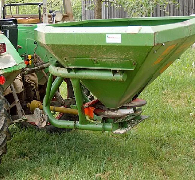 Máquina destinada a la distribución uniforme de fertilizantes sólidos sobre el cultivo o el suelo.